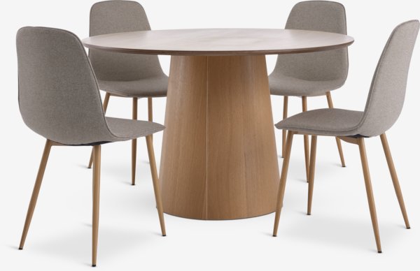 KLIPLEV Ø120 Tisch Eiche natur + 4 BISTRUP Stühle sand
