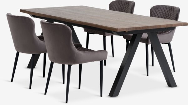 SANDBY + PEBRINGESANDBY L210 Tisch Eiche dunkel + 4 PEBRINGE Stühle grau/schw