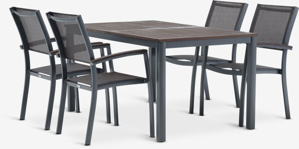 YTTRUP + MADERNEYTTRUP L150 Tisch Hartholz + 4 MADERNE Stapelstuhl grau