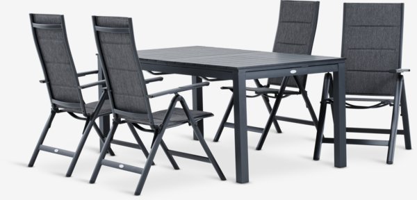 VATTRUP L172/276 Tisch schwarz + 4 MYSEN Stuhl grau