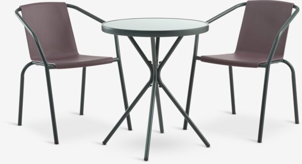 RADSTRUP + MODUMRADSTRUP Ø60 Tisch schwarz + 2 MODUM Stühle aubergine