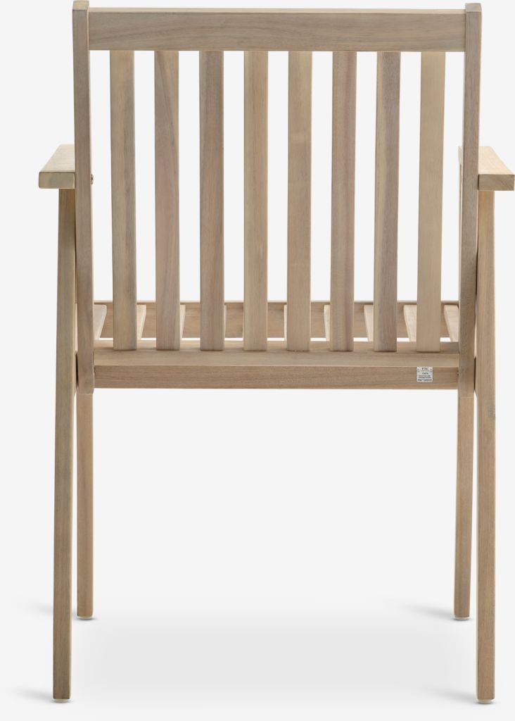 | Material | Rahmen: Massives Akazienholz, Rückenlehne: Massives Akazienholz, Sitz: Massives Akazienholz, Armlehne: Massives Akazienholz, Beine: Massives Akazienholz |