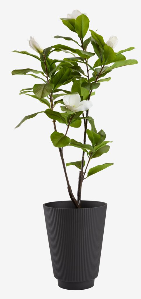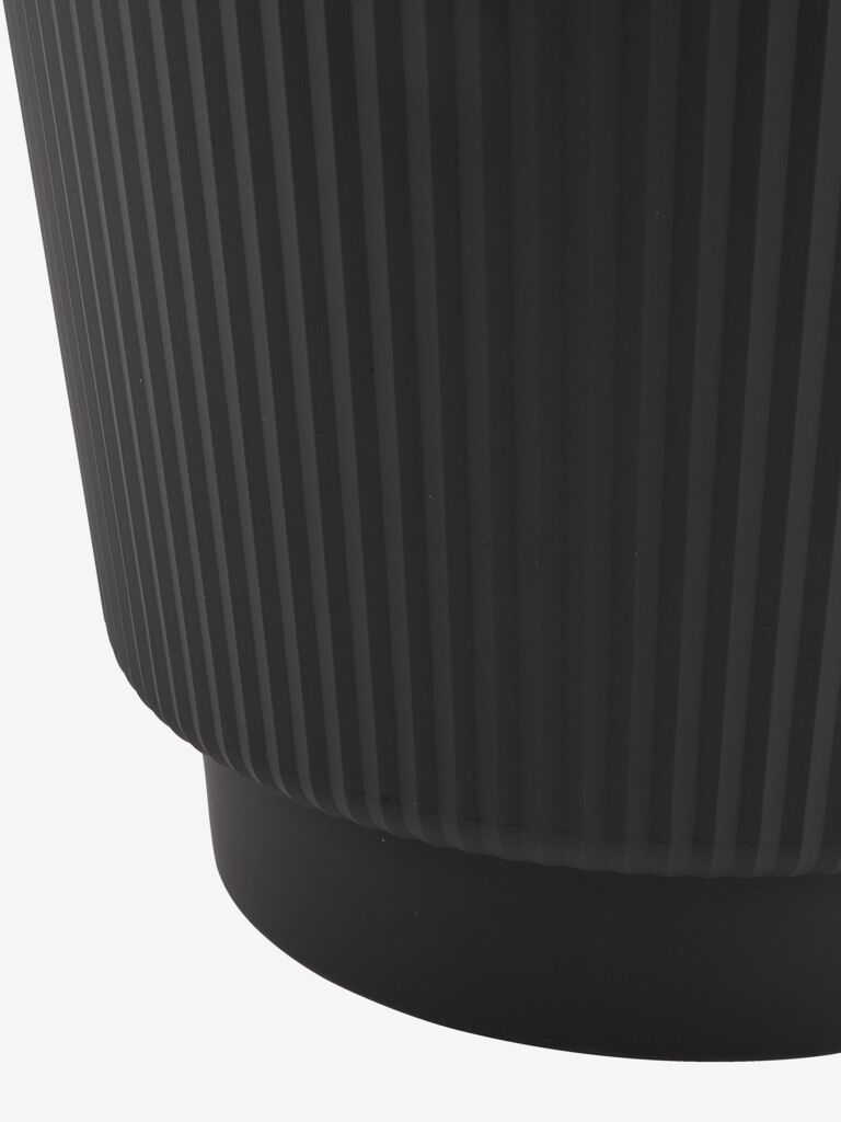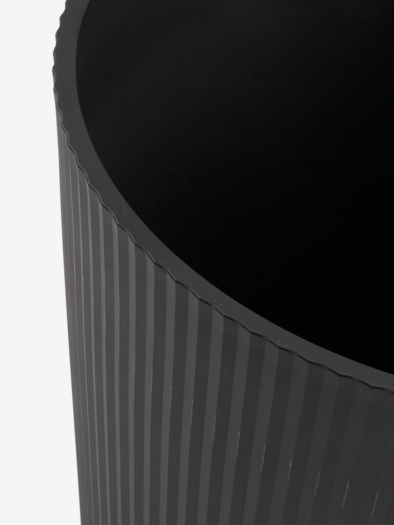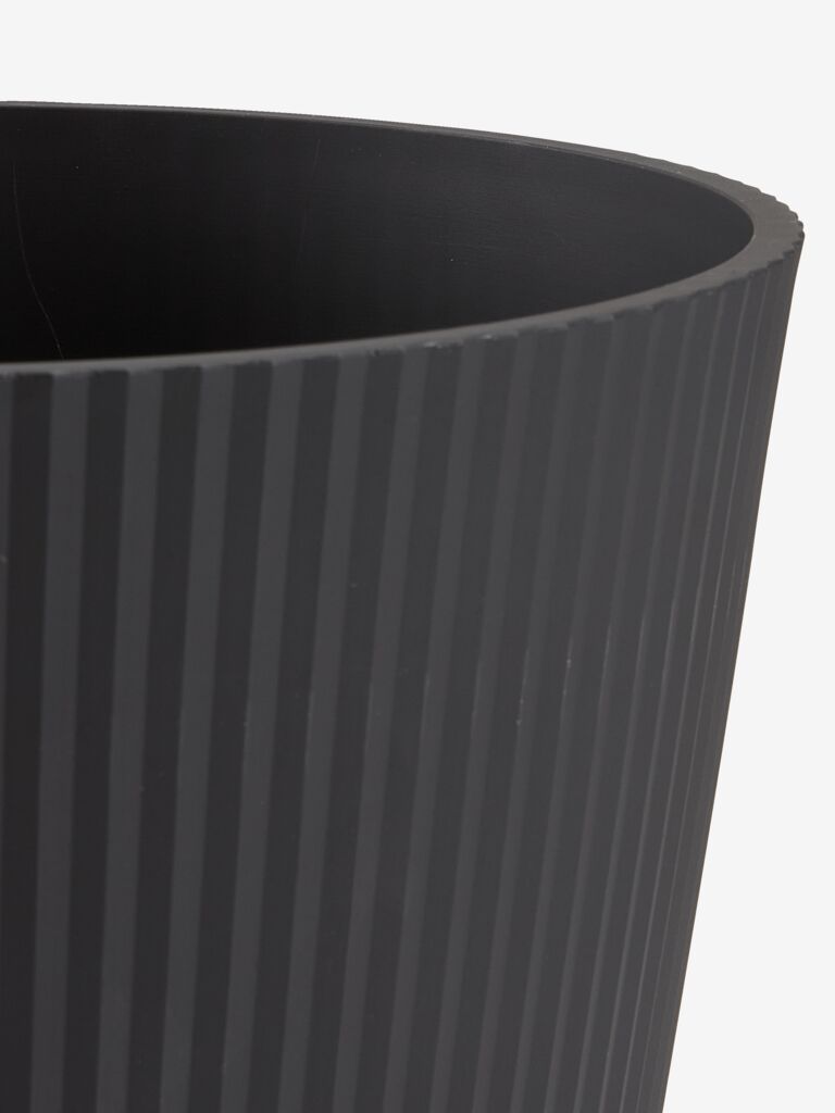 Pflanzkübel mit einem stilvollen, gerippten Design und einer schlichten, schwarzen Oberfläche. Der aus leichtem Kunststoff gefertigte Pflanzkübel lässt sich leicht im Garten oder auf dem Balkon aufstellen. Ein Ablaufloch kann leicht hergestellt werden. Ø30 x H38 cm