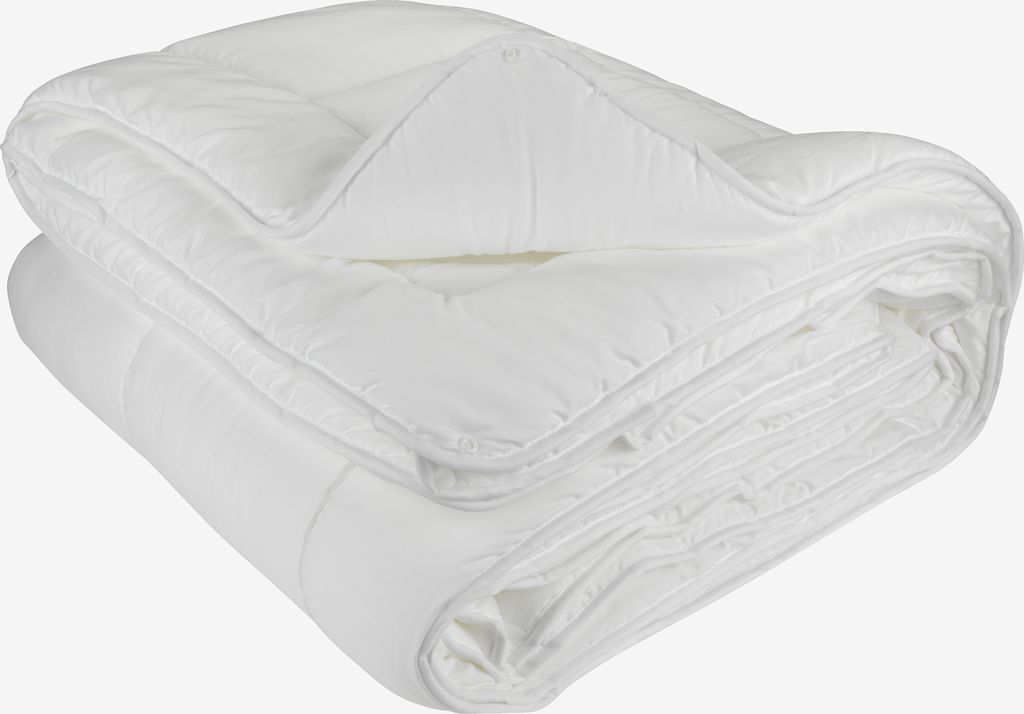 Praktische Vier-Jahreszeiten-Bettdecke 135x200 cm bestehend aus 2 Bettdecken, die mit Knöpfen miteinander verbunden sind. Die beiden Bettdecken können je nach Jahreszeit zusammen oder getrennt verwendet werden. Weiche, leichte Füllung aus silikonisierter Hohlfaser (100% recycelt), 500/700 g. Weiche Hülle aus Mikrofaser (100% Polyester). Waschbar bei 40°C.