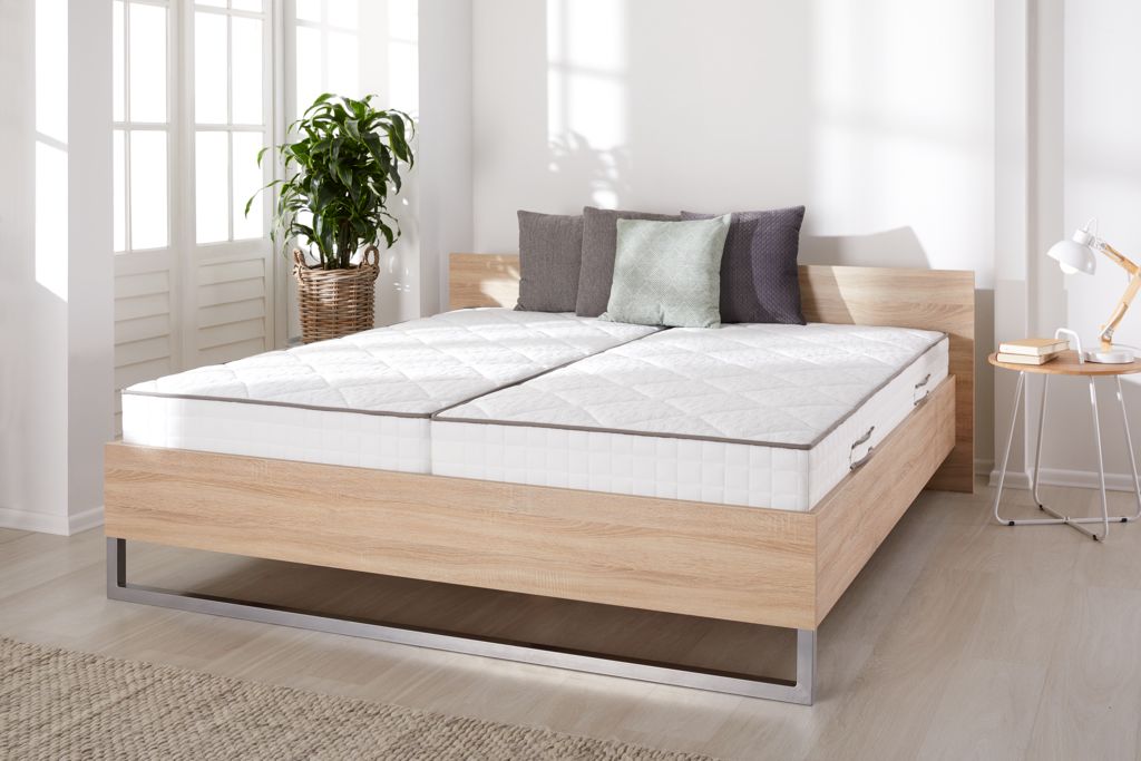 24 cm hohe, wendbare Federkernmatratze 100x200 cm mit 500 Multi-Taschenfedern/m² unterteilt in 7 Komfortzonen, die eine passgenaue, körpergerechte Unterstützung bieten. Gepolstert mit hochelastischem Kaltschaum. Waschbarer Bezug mit dicker Steppung. Der Bezug enthält TENCEL™ Lyocellfasern, die durch effiziente Feuchtigkeitsregulierung für ein natürlich trockenes Gefühl sorgen.