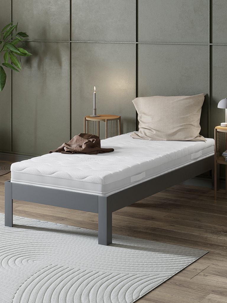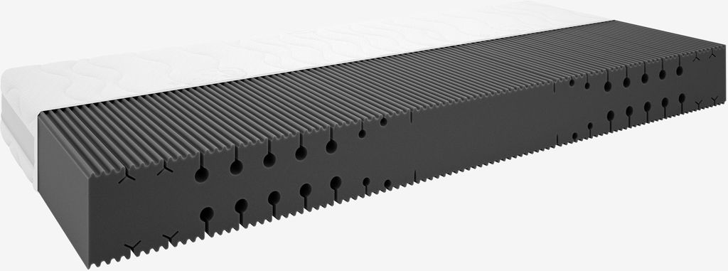 22 cm hohe Schaummatratze 90x200 cm mit 7 Komfortzonen für eine präzise, optimale Unterstützung. Kern aus 20 cm hochelastischem Kaltschaum. Waschbarer Bezug mit dicker Steppung.