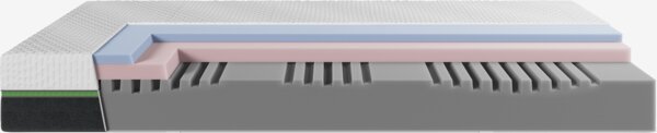 | Komfortzonen | Die Komfortzonen sind so konzipiert, dass sie verschiedene Körperbereiche wie Kopf, Schultern, Lendenwirbelbereich, Hüften und Beine besonders unterstützen. Die Zonen variieren in der Festigkeit, um zum Beispiel eine zusätzliche Lendenwirbelstütze oder eine tiefere Schulterzone zu bieten. Durch die gezielte Unterstützung in bestimmten Bereichen tragen die Komfortzonen dazu bei, den Gesamtkomfort zu erhöhen, eine gesunde Schlafposition zu fördern und Druckstellen zu reduzieren. |