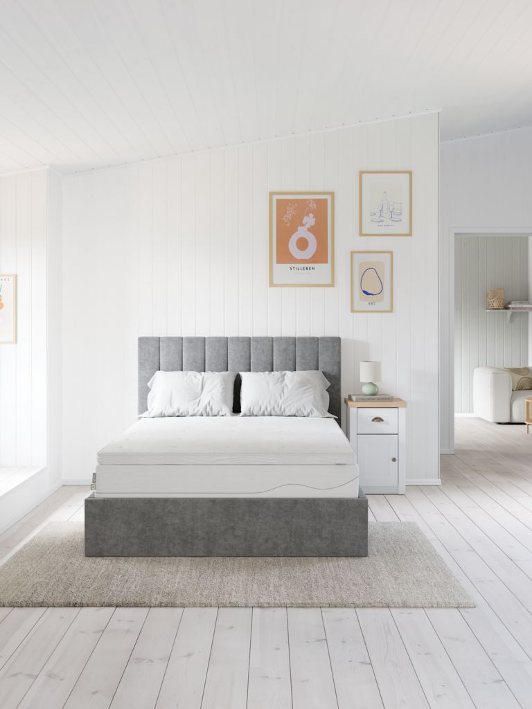 8 cm hoher Topper 140x200 cm mit einem Kern aus druckentlastendem Gelschaum, der sich dem Körper anpasst und überschüssige Wärme ableitet. Der waschbare Bezug ist dick mit Gel-Memoryschaum versteppt. Der Bezug enthält TENCEL™ Lyocellfasern, die durch effiziente Feuchtigkeitsregulierung für ein natürlich trockenes Gefühl sorgen.