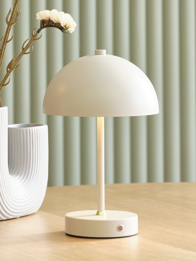 Das Produkt sieht fast genauso aus, wie auf der Abbildung. Es wirkt auf den Bilder weiß. Tatsächlich ist es ein warmes Grau. Also etwas dunkler als erwartet. Gefällt mir aber trotzdem. Die Materialien wirken nicht billig und es ist hochwertig verarbeitet. Das Licht ist ein angenehmes, warmes, gemütliches Licht mit 3 Helligkeitsstufen. Etwas schade finde ich, dass hier kein eingebauter Akku ist. Für den Betrieb benötigt man 3 AA Batterien. Aber mit aufladbaren Akkus auch kein Problem. Ich bin sehr zufrieden damit und habe mir gleich 2 davon gekauft. Preis Leistung super!